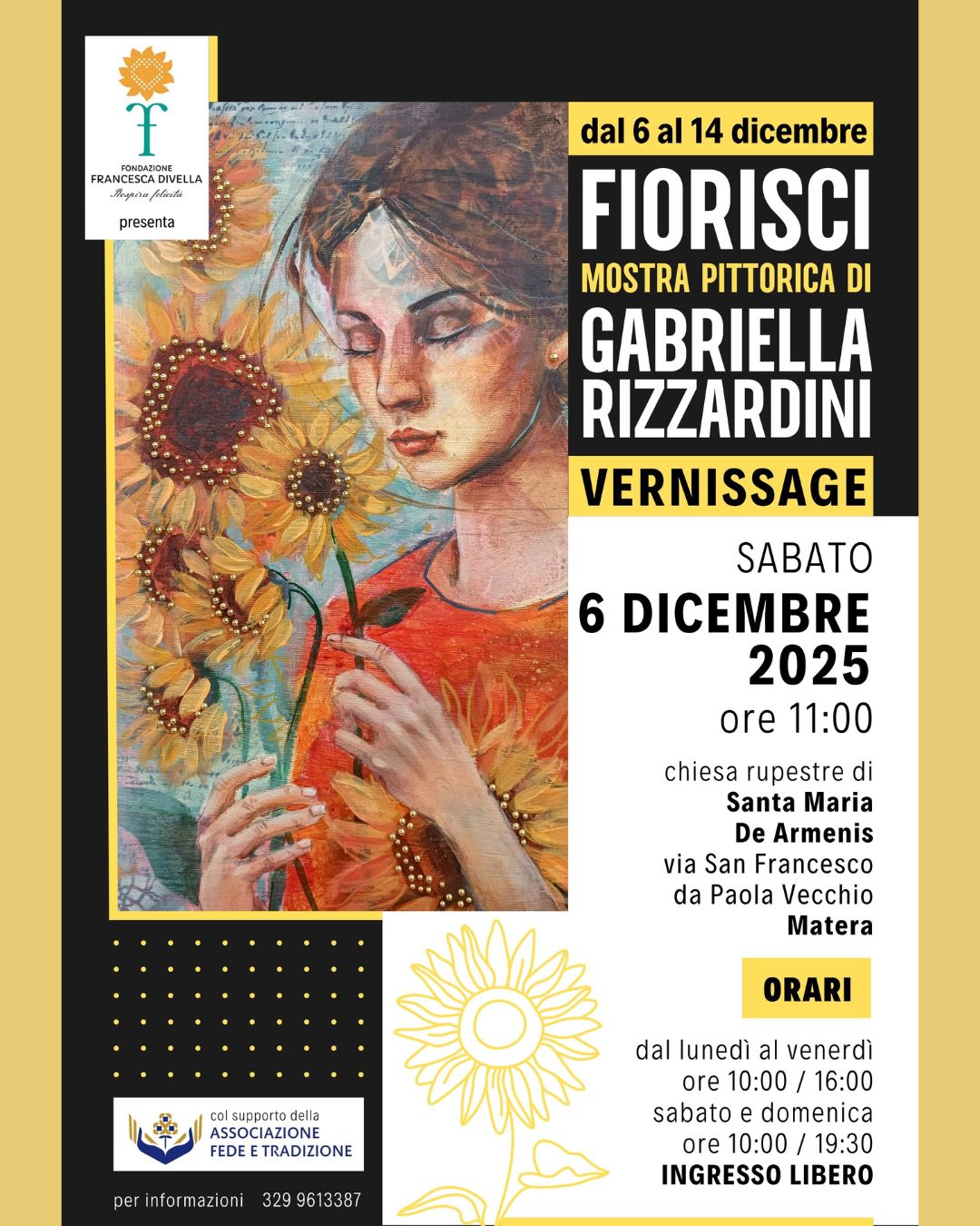 Si è svolta dal 6 al 14 dicembre 2025, nella suggestiva cornice della chiesa rupestre di Santa Maria de Armenis a Matera, la mostra “Fiorisci” dell’artista materana Gabriella Rizzardini, promossa dalla Fondazione Francesca Divella.